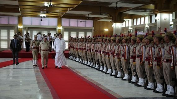 A ceremonial Guard of Honour was presented to the Vice President by Arunachal Pradesh Police at the Raj Bhavan, Itanagar.